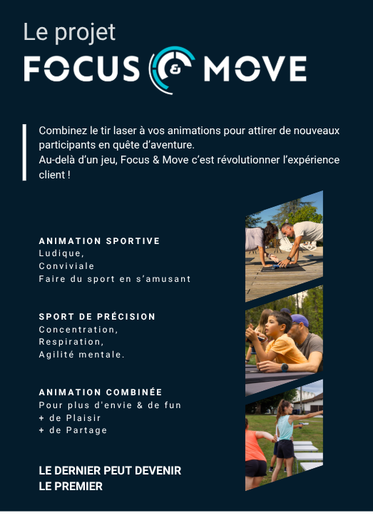 Focus & Move vous permet de proposer des animations simples à animer, accessibles à tous, avec un vrai effet “waouh” qui attire naturellement les vacanciers et les participants.